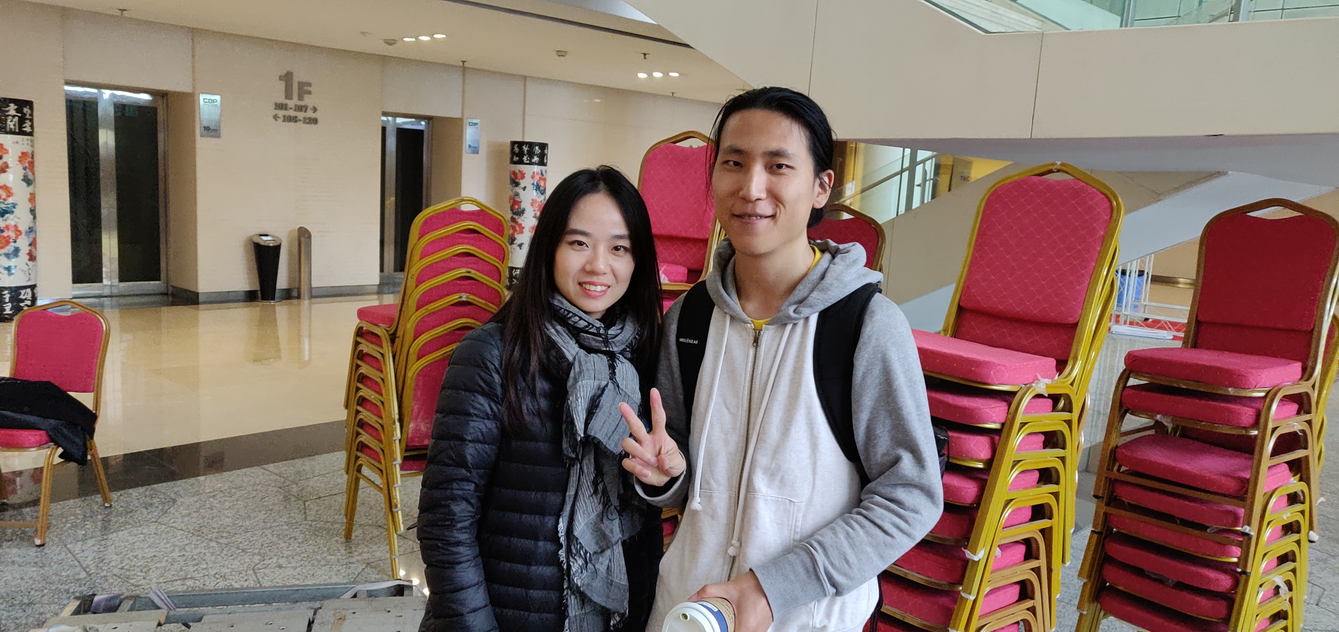 - 笔者穿着汉服大全套现场试用 UOS + 龙芯