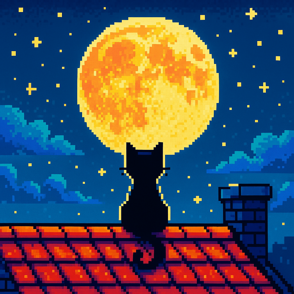 • 提示词示例: 一只猫坐在屋顶上看月亮,像素艺术风格,8比特,色彩鲜艳。
