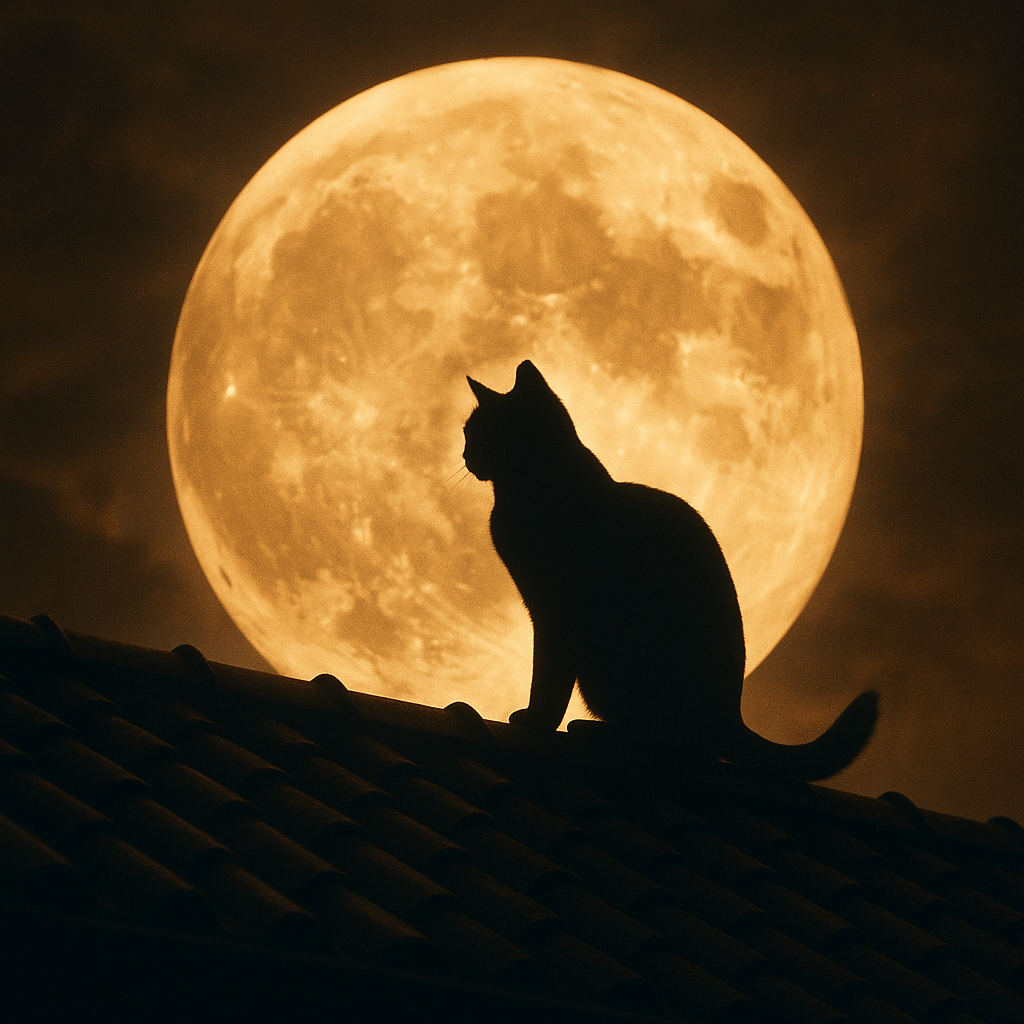 • 提示词示例:一张猫咪剪影在屋顶上的照片,背景是巨大的满月,电影感光效,戏剧性氛围,高细节。